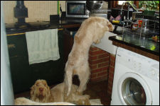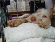 Dogs on a grooming table